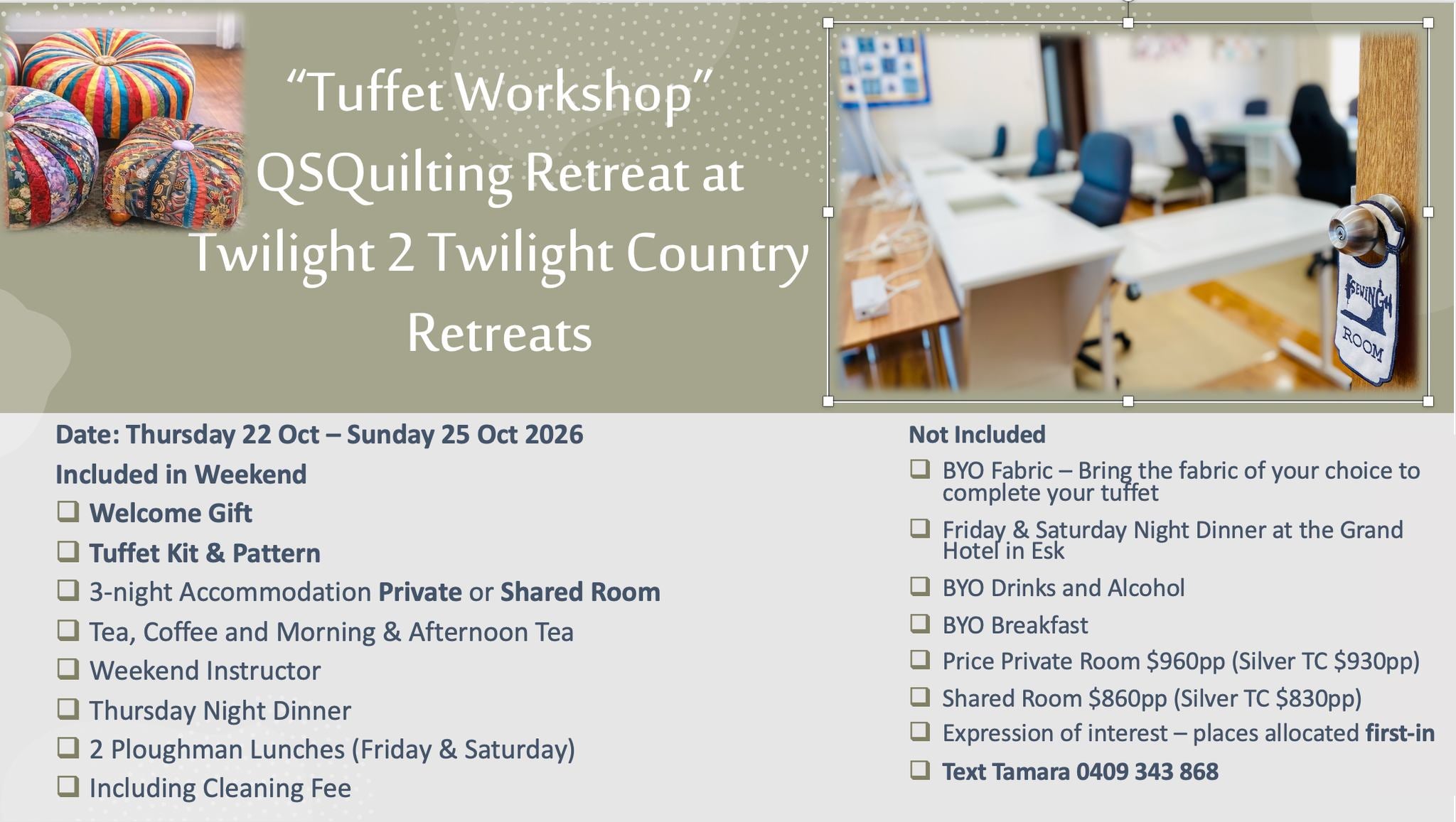 RETREAT - "Tuffet Workshop" QSQuilting Retreat Oct 2026